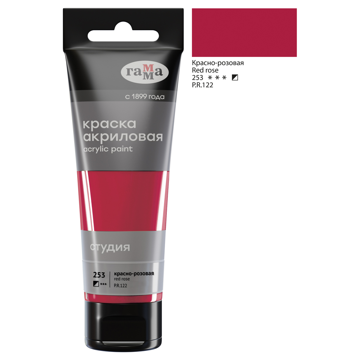 Краска акриловая художественная Гамма "Студия", 75мл, пластиковая туба, красно-розовая