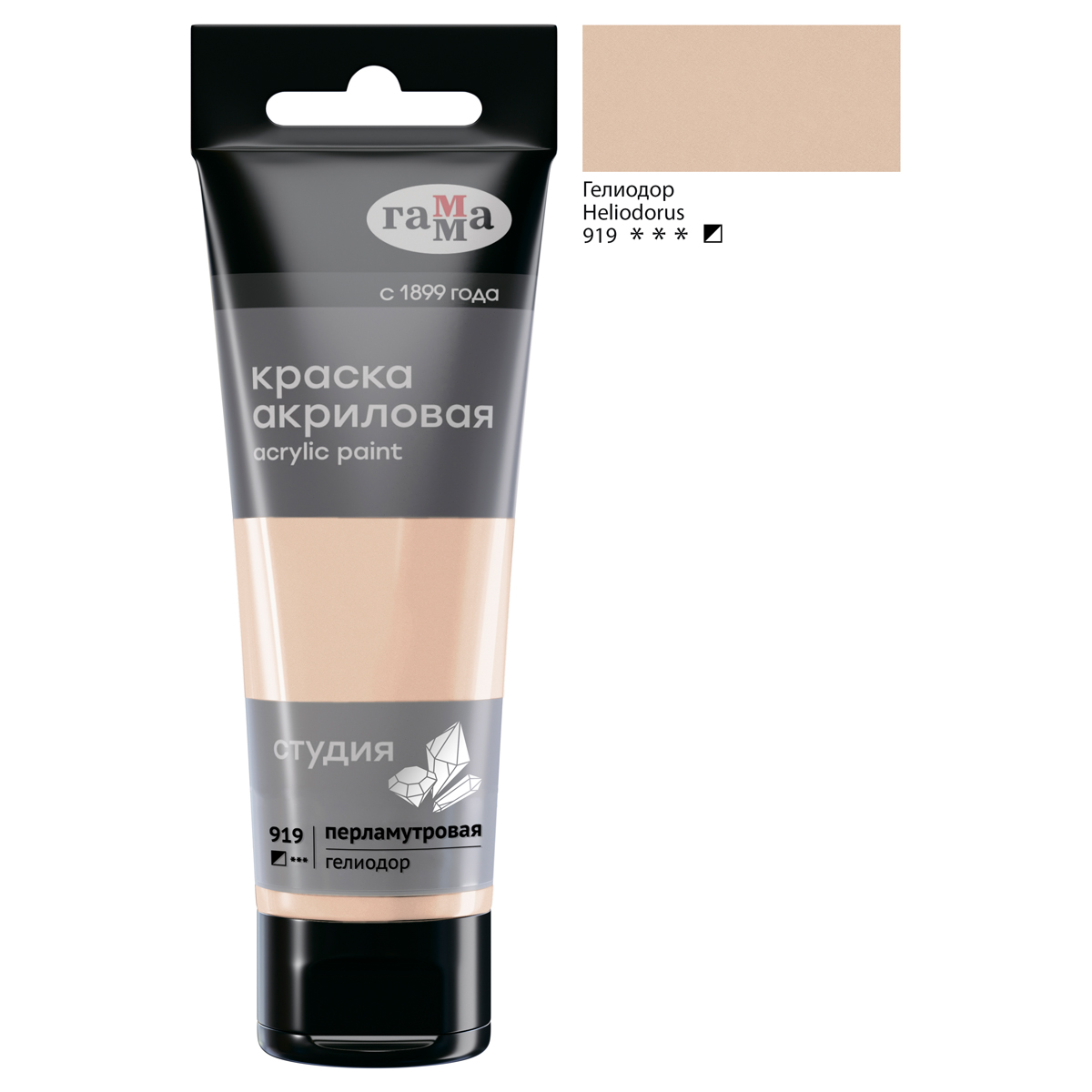 Краска акриловая художественная перламутровая Гамма "Студия", 75мл, пластиковая туба, гелиодор