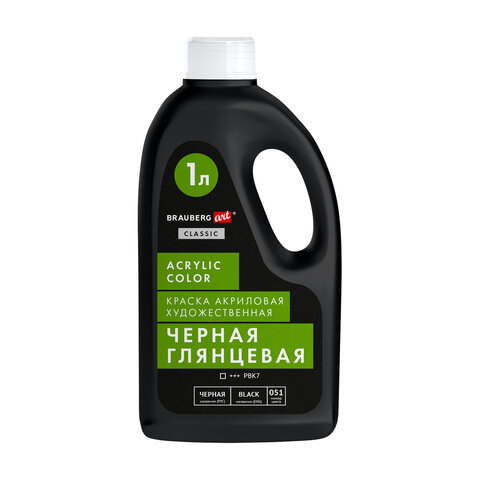 Краска акриловая художественная ГЛЯНЦЕВАЯ черная 1000 мл бутыль, BRAUBERG ART CLASSIC, 192542