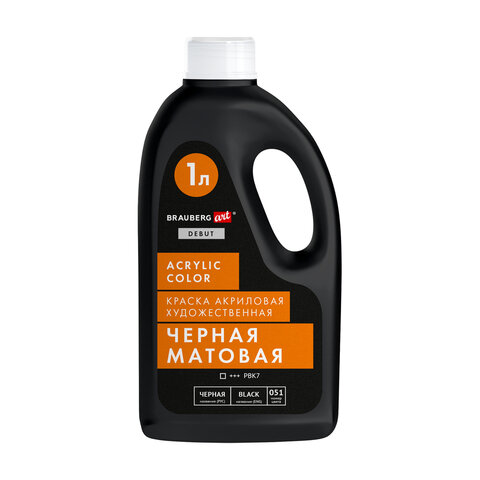 Краска акриловая художественная МАТОВАЯ черная 1000 мл бутыль, BRAUBERG ART DEBUT, 192538