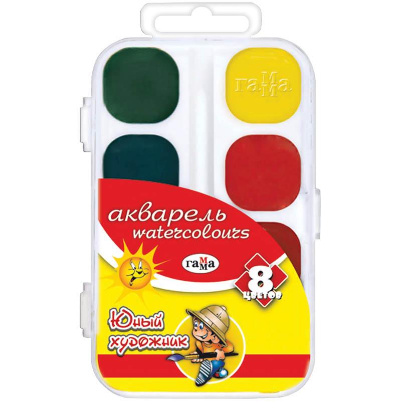 Акварель "Юный художник" 08 цветов, без кисти, пласт. упак.: 212069 штр.: 4600395029714