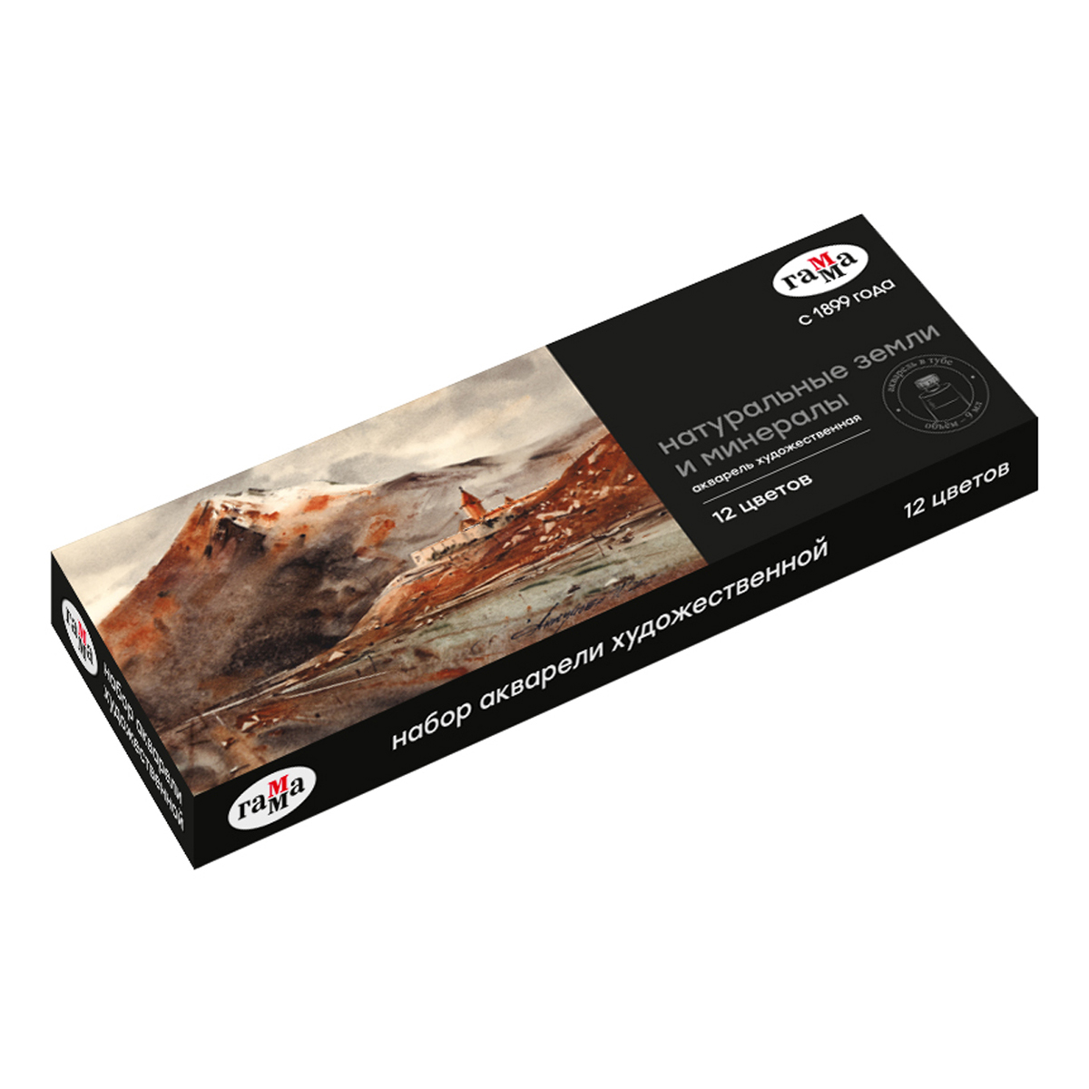 Акварель художественная Гамма "Старый Мастер" "Натуральные земли и минералы", 12цв*9мл, туба, картон. коробка