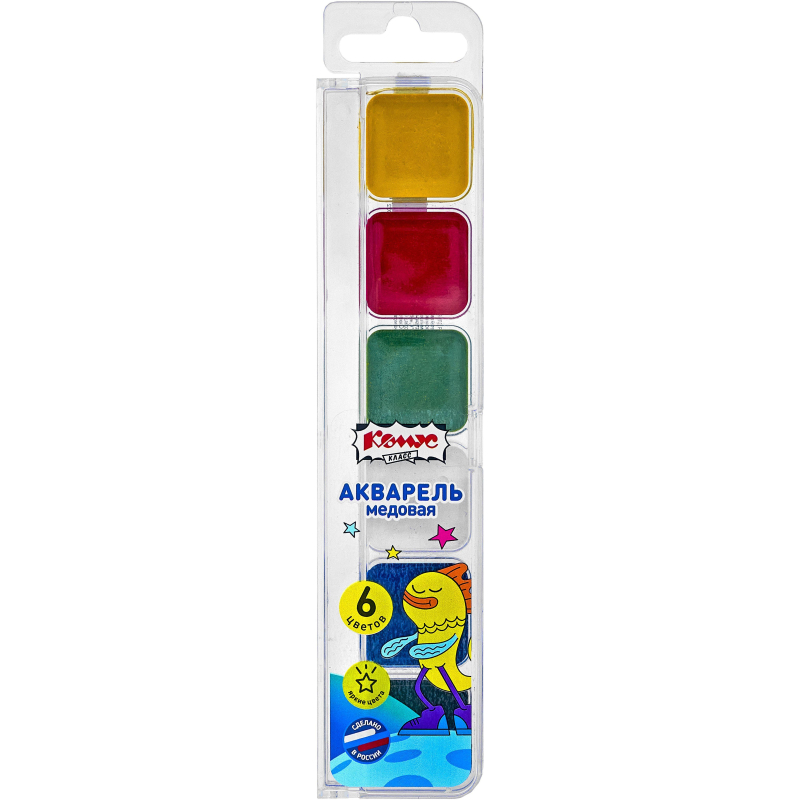 Краски акварельные Комус Класс Максики 6 цветов, медов, квадр. кюветы, пл.пенал