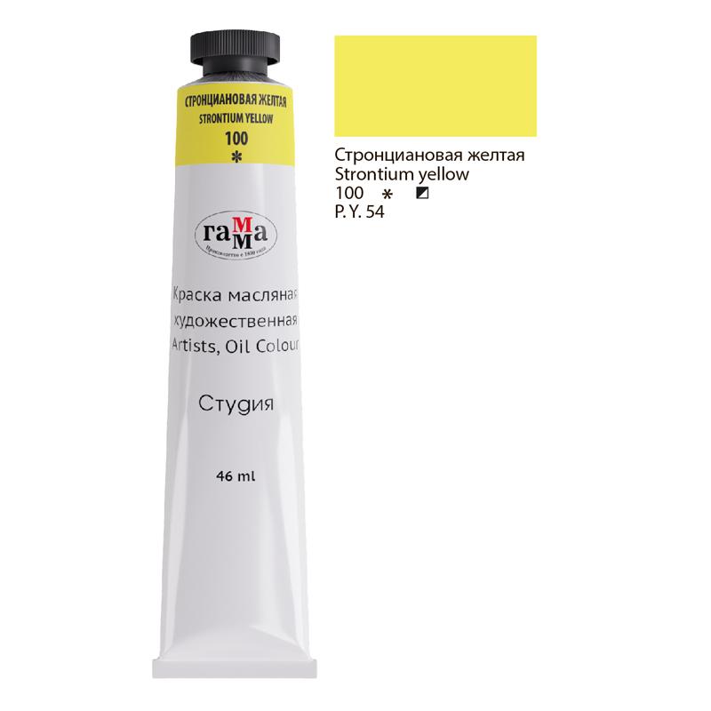 Краска масляная художественная Гамма "Студия", 46мл, туба, стронциановая желтая