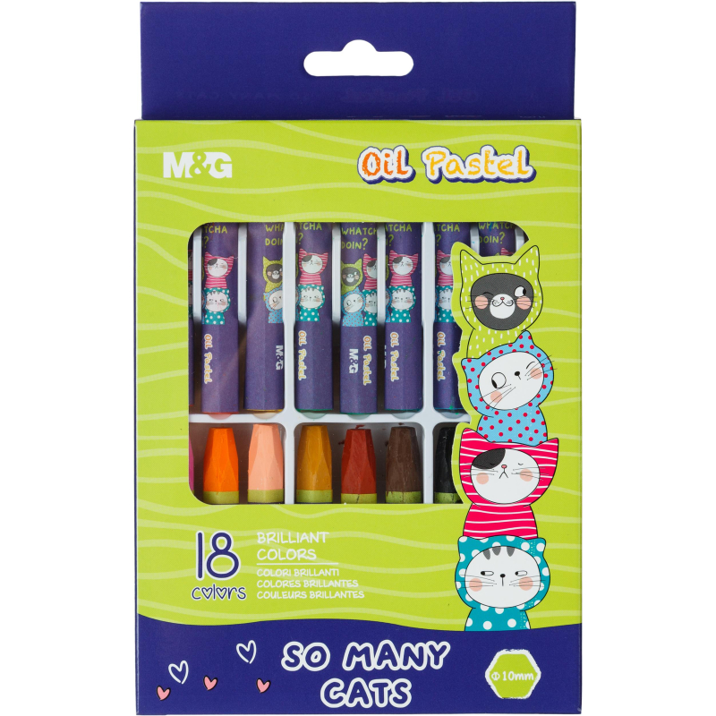 Пастель масляная M&G, 6-гран, 18 цветов в наборе