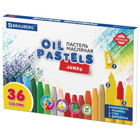 Масляная пастель BRAUBERG PREMIUM порадует как юных, так и опытных художников. Шестигранная форма удобно ложится в руку, а широкий выбор ярких цветов и мягкое письмо не оставят равнодушным ни одного опытного художника. Палитра состоит из 36 ярких и насыщенных цветов, в комплекте стек, держатель и точилка для мелка. Полностью безопасны в использовании, не токсичны и не имеют резкого запаха. Благодаря своему составу мелки пишут мягко и ярко. Утолщенная шестигранная форма корпуса и диаметр 11 мм делают их еще более удобными для тренировки руки.Каждый мелок завернут в бумажную этикетку, что предохраняет от загрязнений, снижает скольжение, увеличивает прочность. Восковые мелки находятся на пластиковой подложке, которую можно вытащить, что поможет при выборе цвета. Дополнительно упакованы в короб с термоусадкой. Надежная упаковка защитит мелки от повреждений.