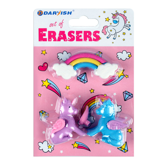 Набор ластиков "Darvish" 3шт/уп Единорожка ассорти