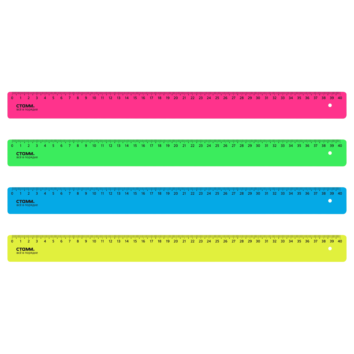 Линейка 40см СТАММ, пластиковая, непрозрачная, неоновые цвета, ассорти