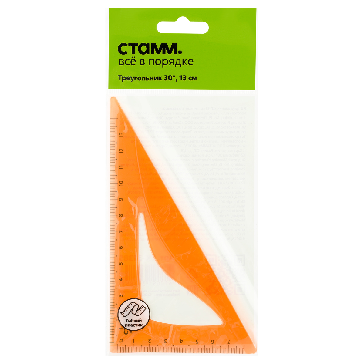 Треугольник 30°, 13см СТАММ, пластиковый, гибкий, прозрачный, оранжевый, европодвес