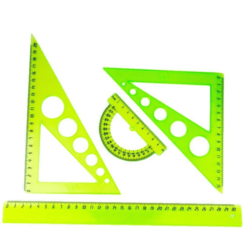 Набор чертежный 4 предмета, бол. Унипласт пластик непрозрач. зелен. с европодвесом