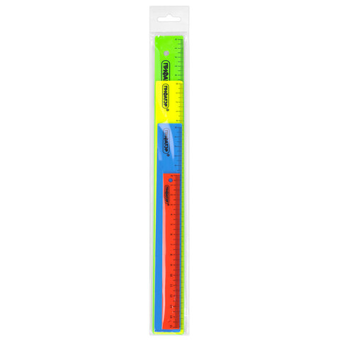 Линейки пластиковые 15, 20, 25, 30 см неоновые, ПИФАГОР, НАБОР 4 шт., непрозрачные, европодвес, 210906