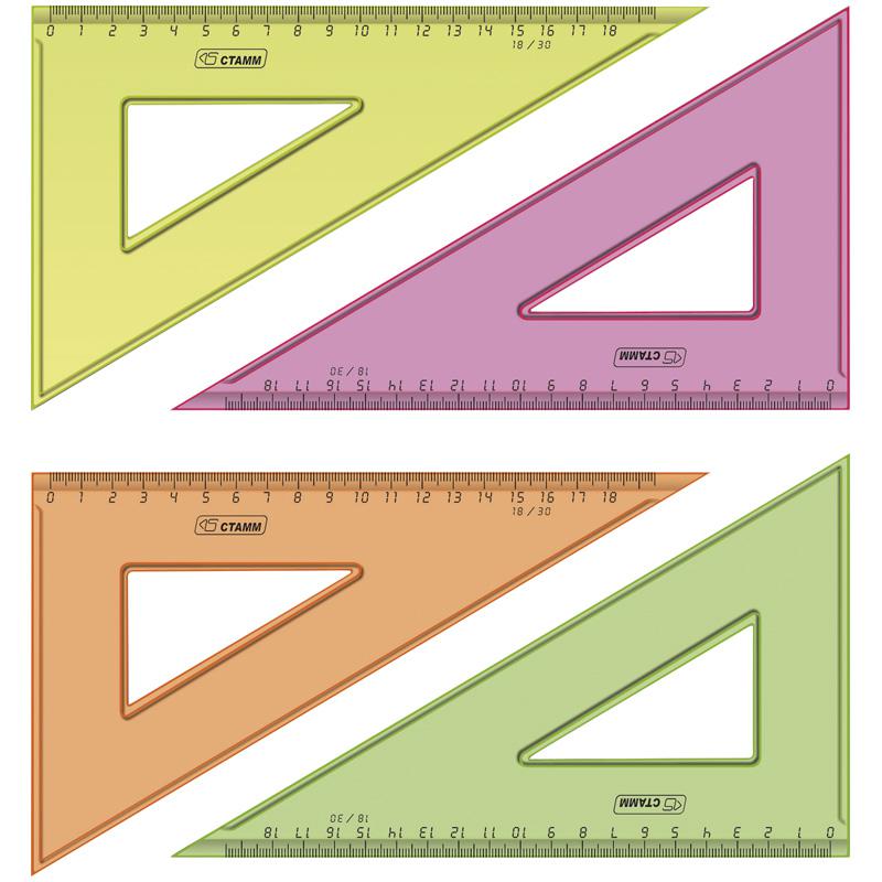 Треугольник 30°, 18см, прозрачный флуоресцентный, 4цв.: ТК47 штр.: 4620000632870