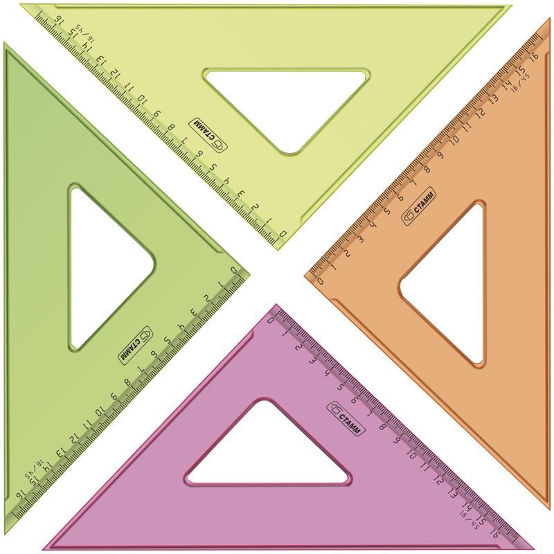Треугольник 45°, 16см, прозрачный флуоресцентный, 4цв.: ТК57 штр.: 4620000638179