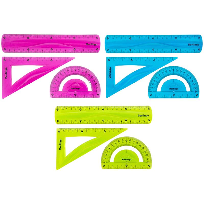 Набор чертежный Berlingo "Flexy" средний (треуг. 2шт, линейка 20см, транспортир), гибкий, ассорти RS_10103
