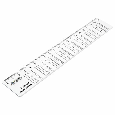 Линейка-шпаргалка ПИФАГОР с таблицей умножения - это незаменимый атрибут школьника. С помощью линейки можно чертить всевозможные геометрические фигуры, а таблица умножения пригодится в решении примеров и задач. Линейка-шпаргалка (таблица умножения) из прочного пластика с гладкой глянцевой поверхностью. Имеет безопасные закруглённые углы и четкую контрастную миллиметровую шкалу. Длина шкалы составляет 20 см.