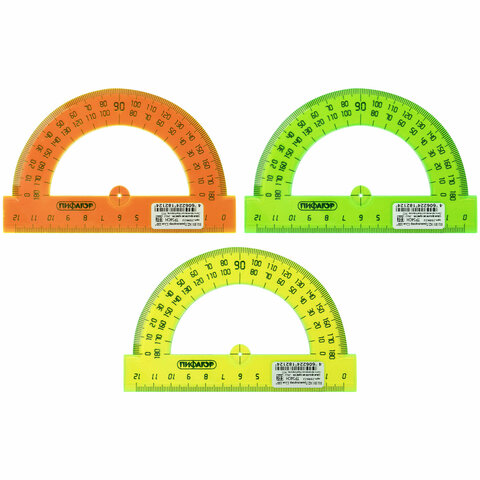 Транспортир 12 см, 180 градусов, ПИФАГОР, прозрачный, неоновый, ассорти, 210622