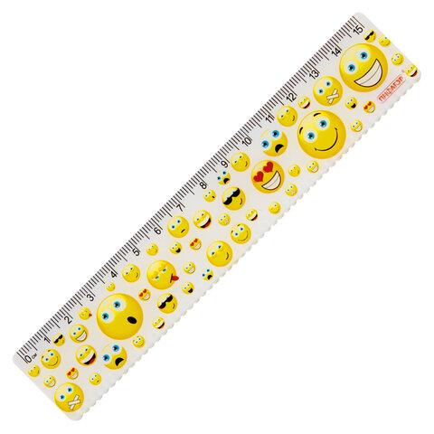 Линейка пластиковая 15 см, ПИФАГОР "Смайлы", цветная печать, с волнистым краем, европодвес, 210636