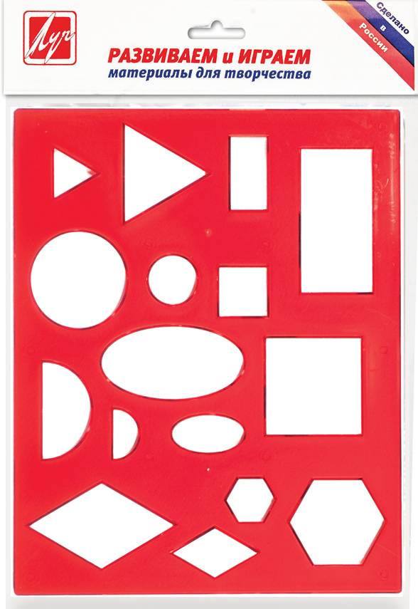 Трафарет ЛУЧ ГЕОМЕТРИЧЕСКИЕ ФИГУРЫ №1 пласт. непрозрач. красный