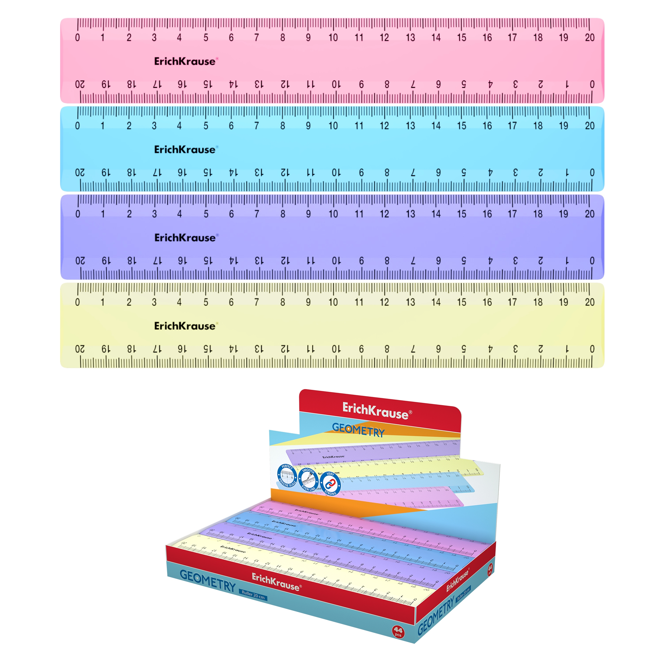 Линейка пластиковая Erich Krause Pastel, 20см, ассорти из 4 цветов, в коробке-дисплее