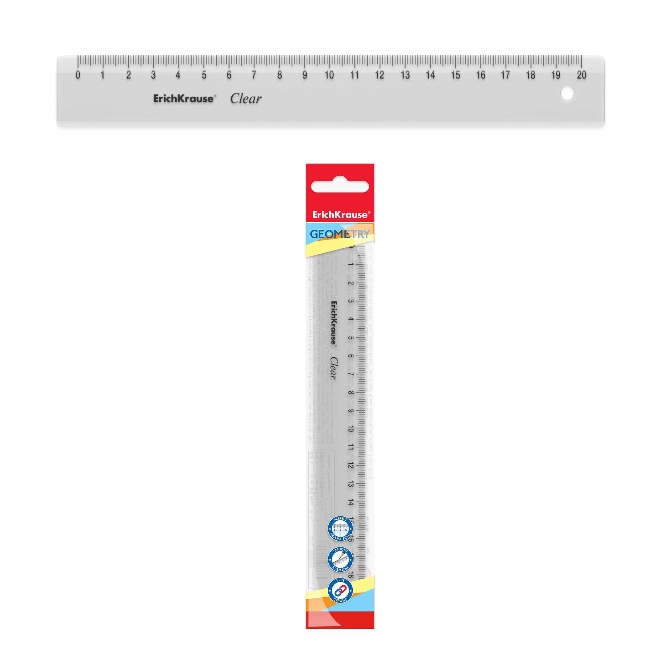 Линейка пластиковая Erich Krause Clear, 20см, прозрачный, в флоупаке
