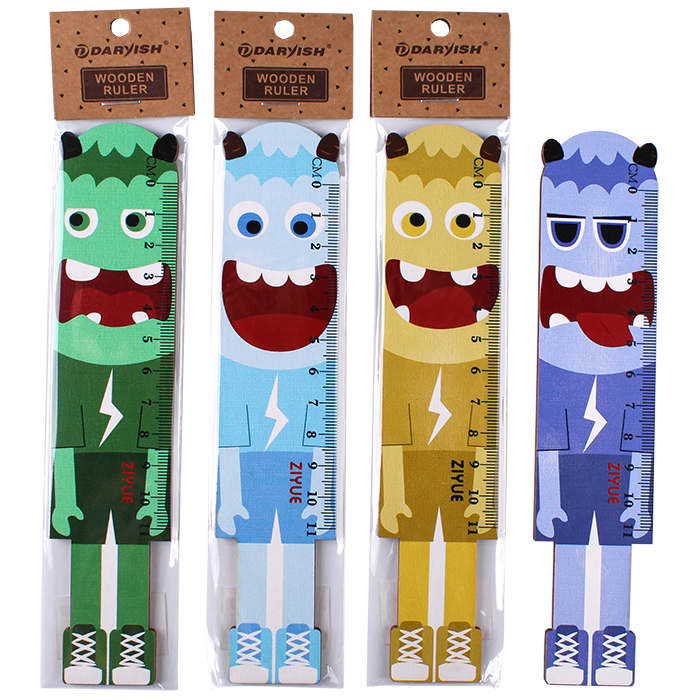 Линейка 11см деревянная "Монстрик" ассорти