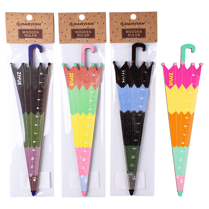 Линейка 12см деревянная "Зонтик" ассорти