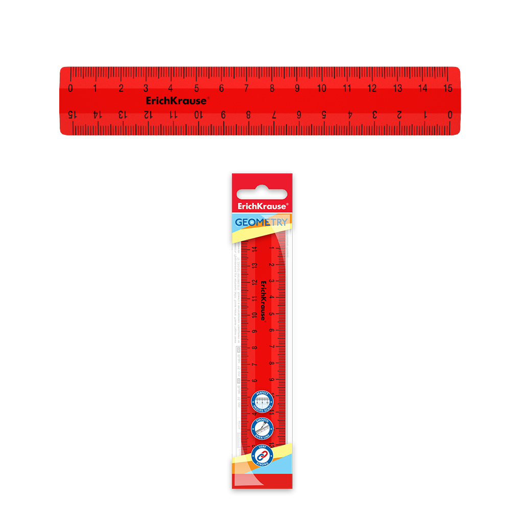 Линейка пластиковая ErichKrause® Classic, 15см, красный, во флоупаке