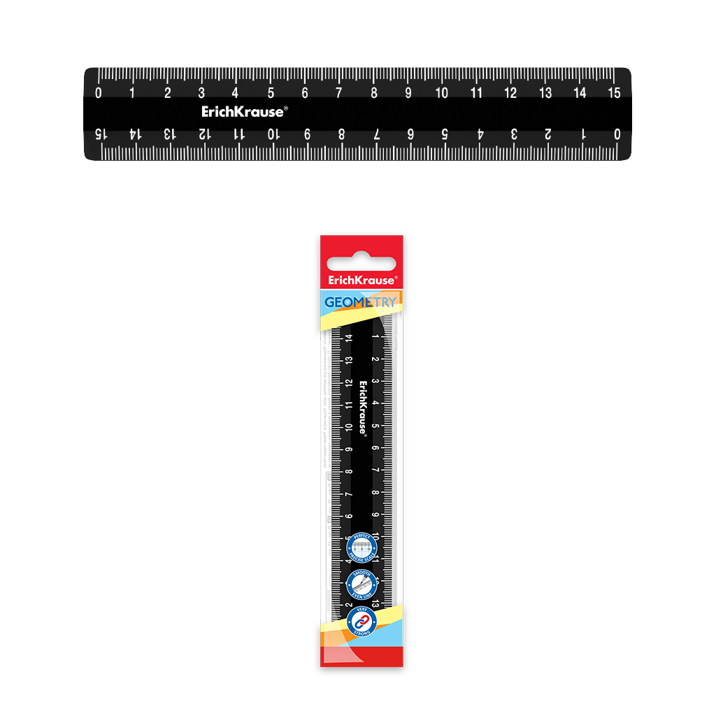 Линейка пластиковая ErichKrause® Classic, 15см, черный, во флоупаке