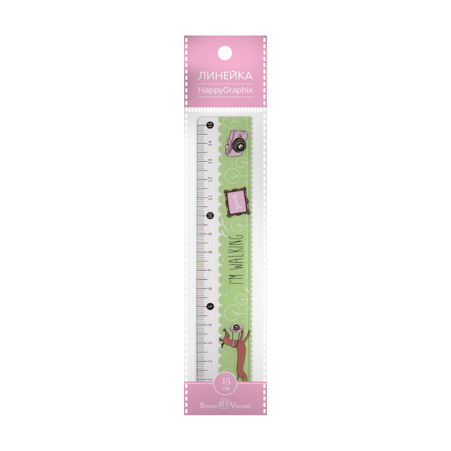 ЛИНЕЙКА ПЛАСТИКОВАЯ С ВОЛНИСТЫМ КРАЕМ "HappyGraphix. Собака-фотограф", 15 СМ