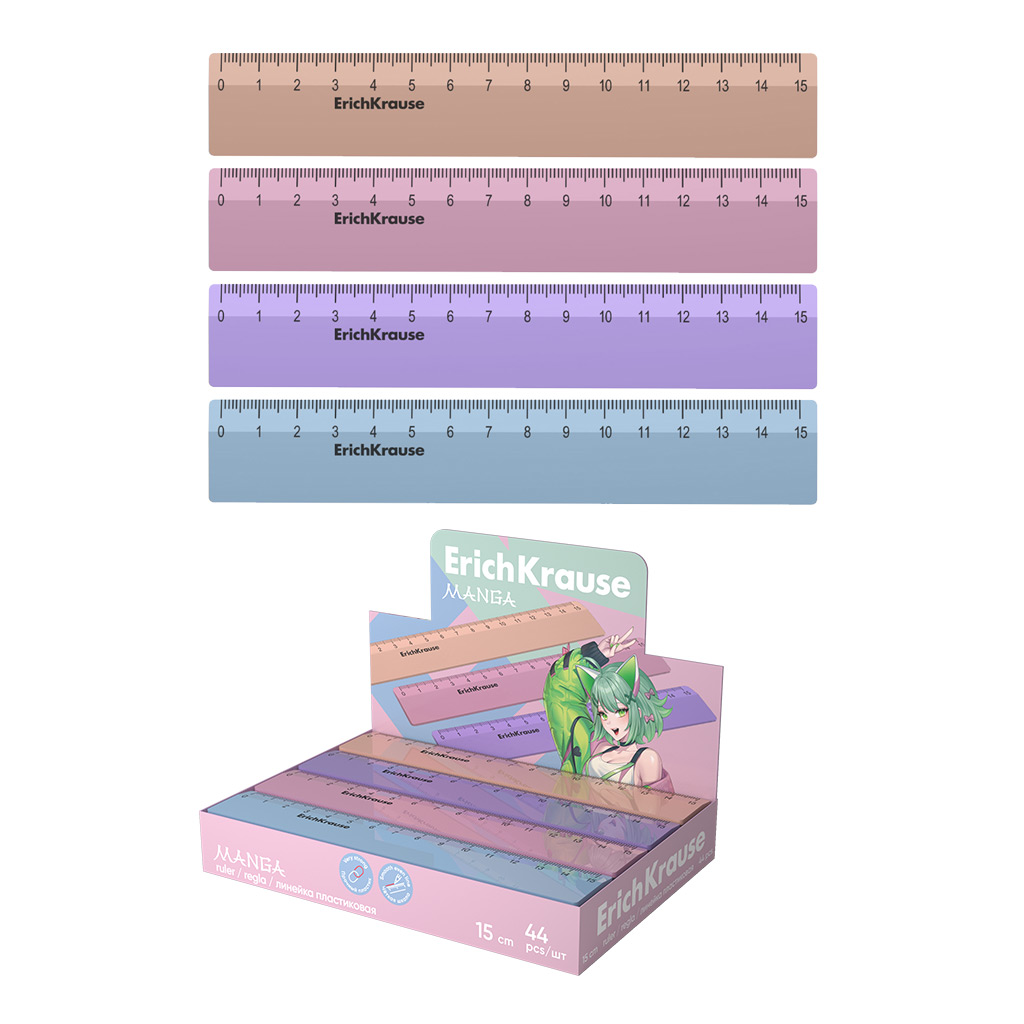 Линейка пластиковая Erich Krause Manga, 15см, ассорти (в коробке-дисплее по 44 штуки)