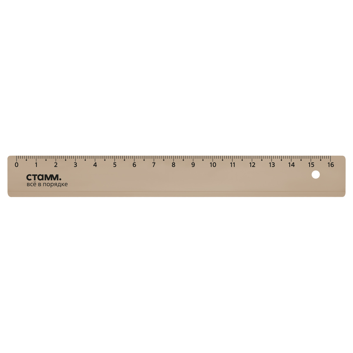 Линейка 16см СТАММ, пластиковая, прозрачная, тонированная коричневая