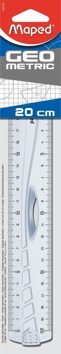 Линейка MAPED Geometric классн. 20 см пластик прозрач. бесцвет. с держателем с европодвесом