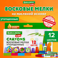 Восковые мелки утолщенные BRAUBERG KIDS, НАБОР 12 цветов, на масляной основе, 271693