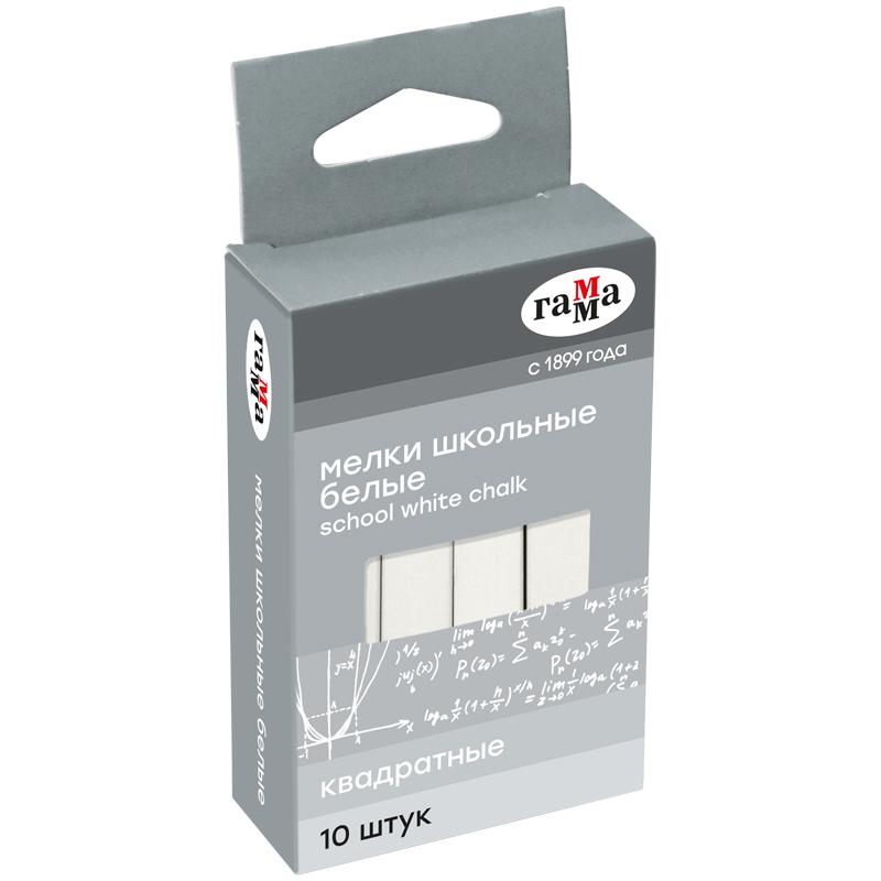 Мелки белые Гамма, 10шт., мягкие, квадратные, картонная коробка, европодвес