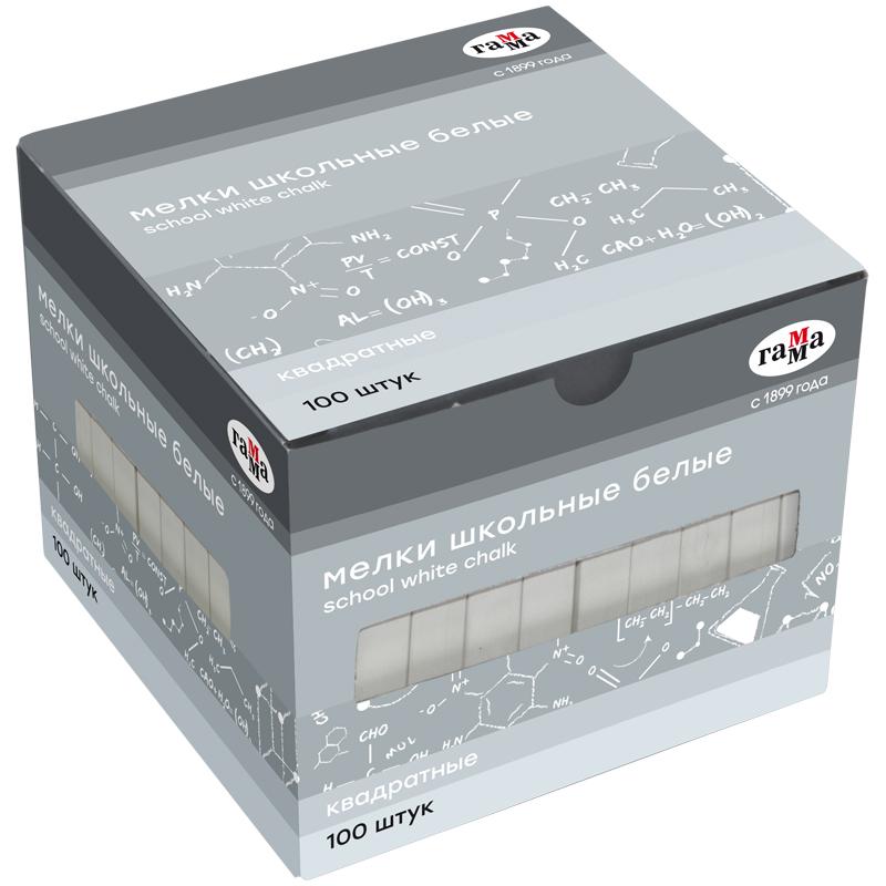 Мелки белые Гамма, 100шт., мягкие, квадратные, картонная коробка