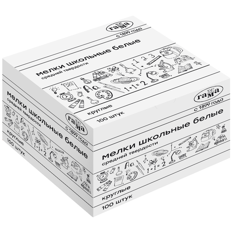 Мелки школьные Гамма, белые, 100шт., средней тверд., круглые, картонная коробка