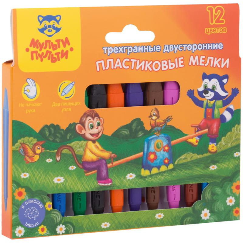 Мелки пластиковые двусторон. Мульти-Пульти "Приключения Енота" 12 цв., трехгранные, картон. РС_20135