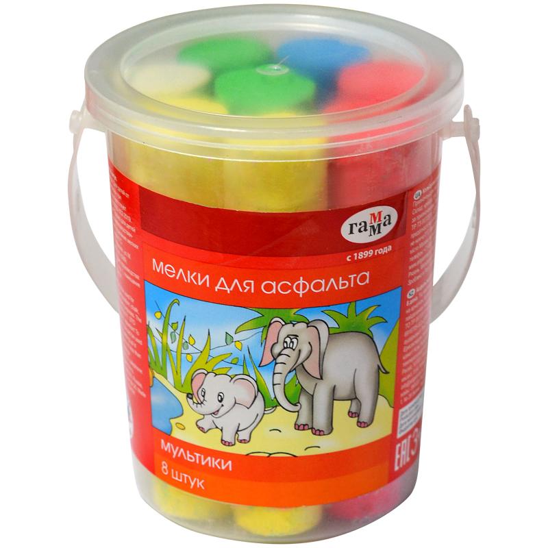 Мелки цветные для асфальта Гамма "Мультики", 8шт., 5цв., круглые, пластиковое ведро