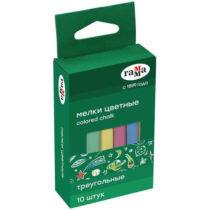 Мелки цветные Гамма, 10шт., мягкие, треугольные, картонная коробка, европодвес. 909192
