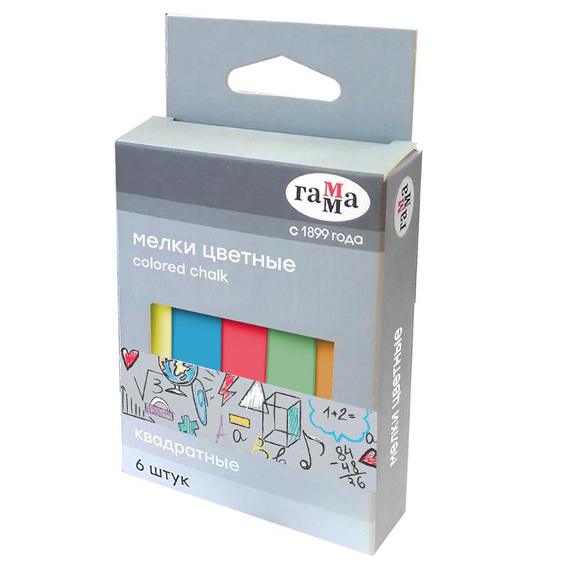 Мелки цветные Гамма, 6шт., мягкие, квадратные, картонная коробка, европодвес