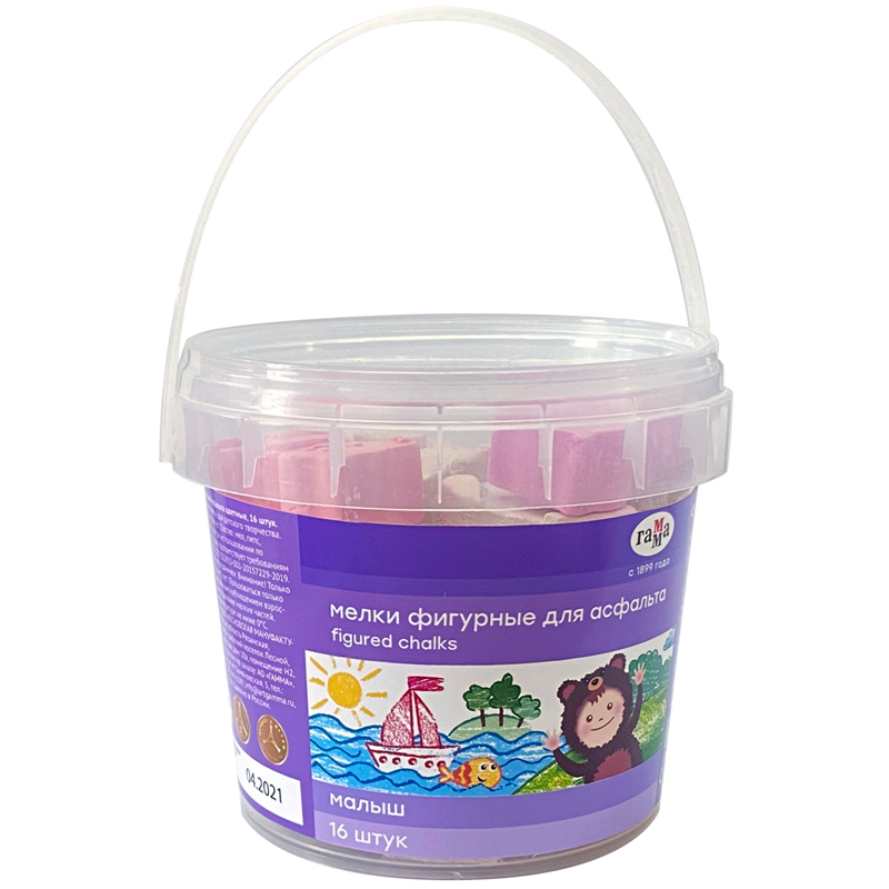 Мелки фигурные для асфальта Гамма "Малыш", ассорти, 16шт., пластик. ведро