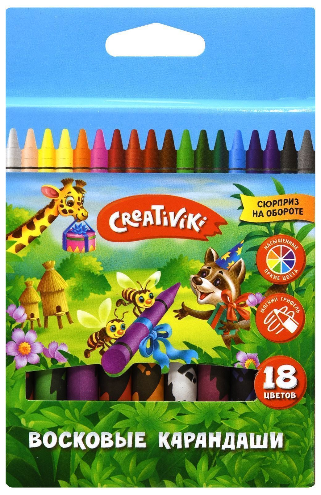 Набор восковых мелков Creativiki 18 цветов, круглые 8 мм.