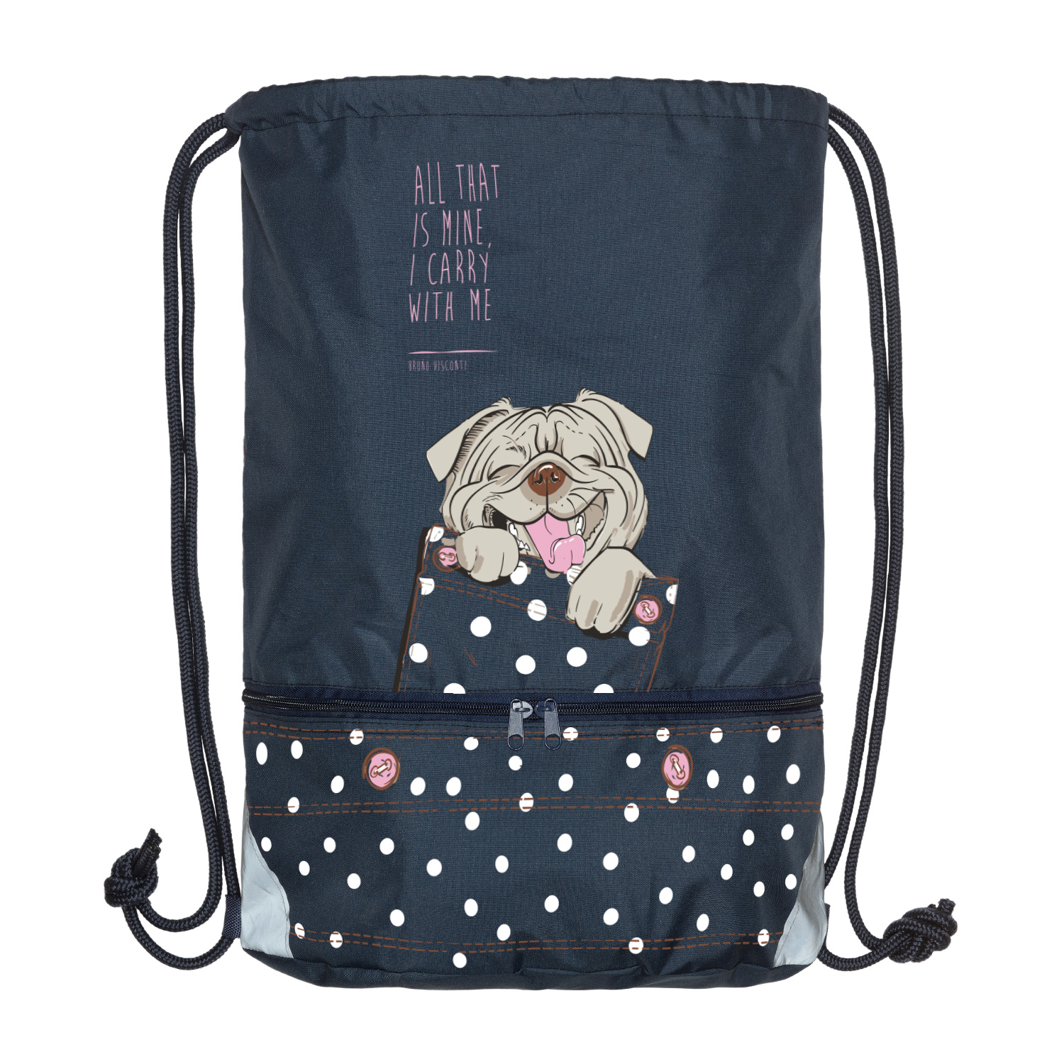 МЕШОК ДЛЯ ОБУВИ ДВУХСЕКЦИОННЫЙ СИНИЙ "КАРМАННЫЕ ЖИВОТНЫЕ.СОБАЧКА" 37 х 48 см.