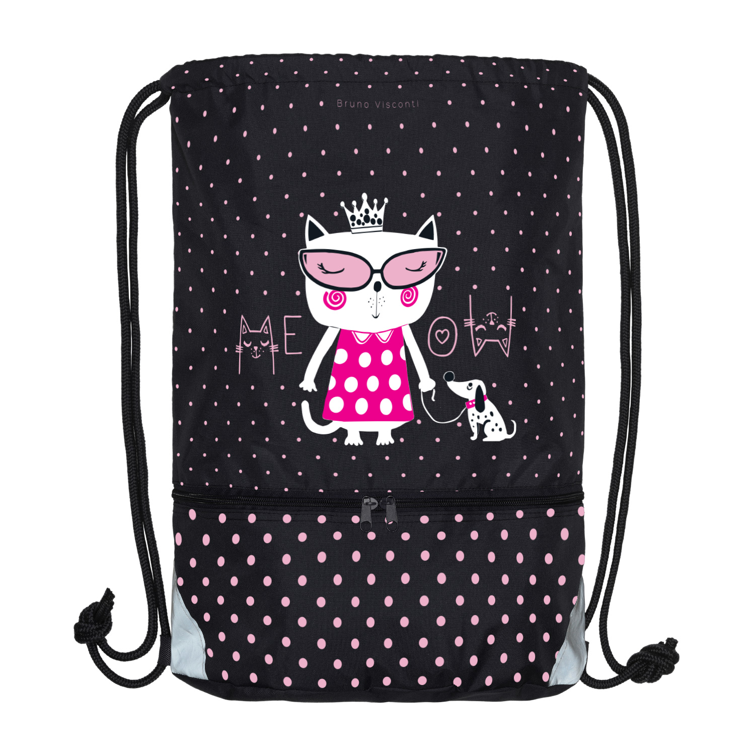 МЕШОК ДЛЯ ОБУВИ ДВУХСЕКЦИОННЫЙ ЧЕРНЫЙ "GINZA CATS.КОШЕЧКА НА ПРОГУЛКЕ" 37 х 48 см.