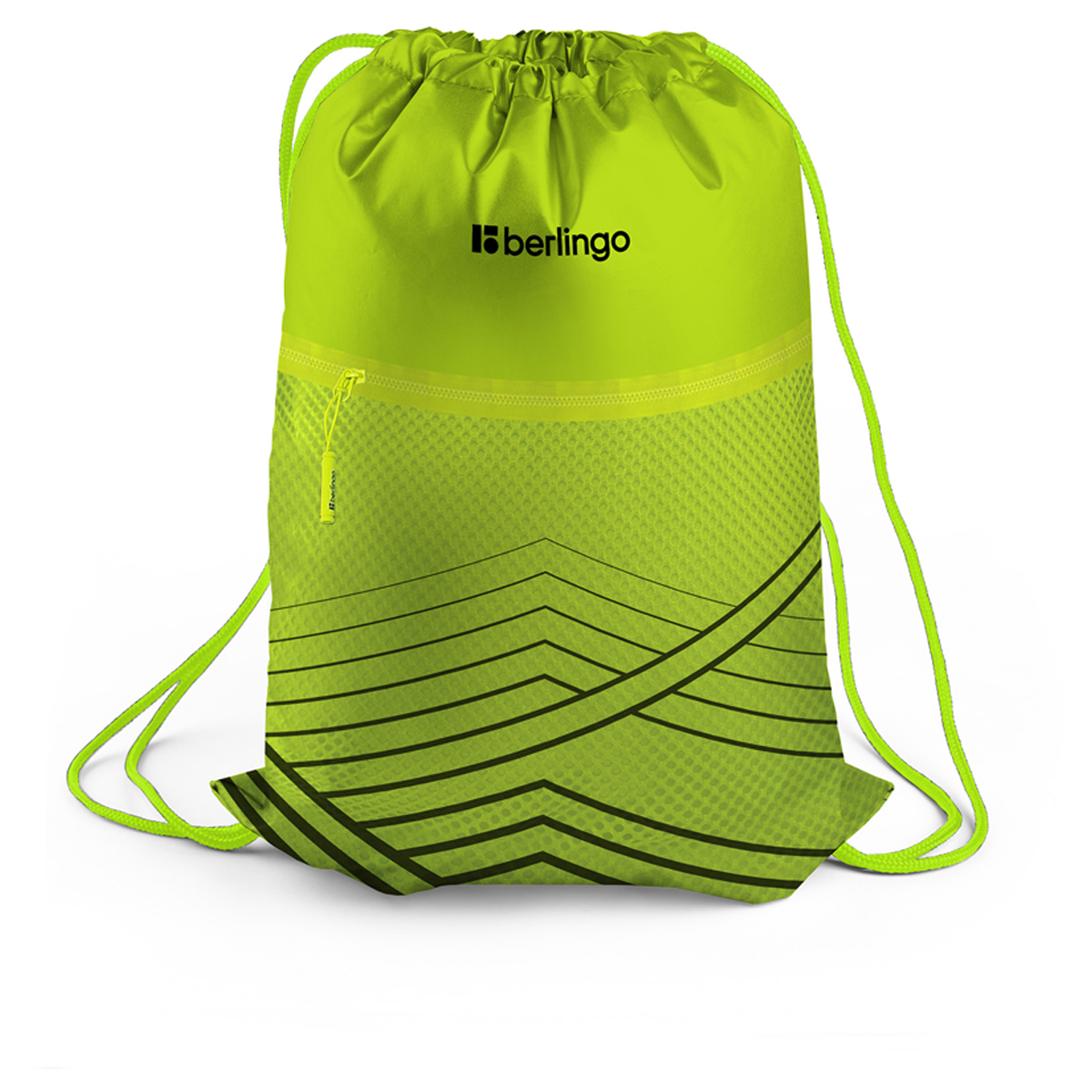 Мешок для обуви 1 отделение Berlingo "Green geometry", 360*470мм, карман на молнии