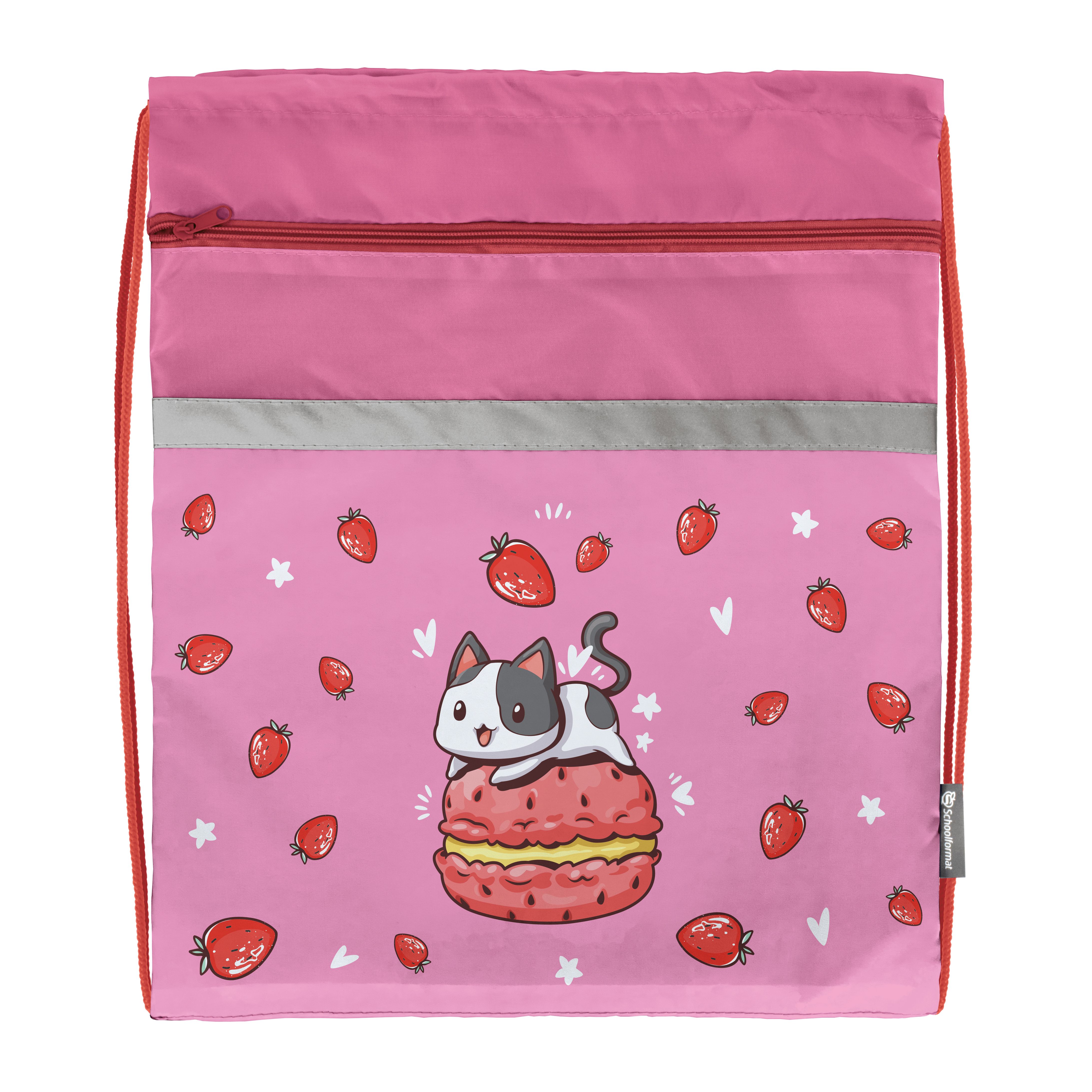 Мешок для обуви Schoolformat STRAWBERRY CAT 49х41 см роз. 1 отд. с бол. карманом на молнии для девочек