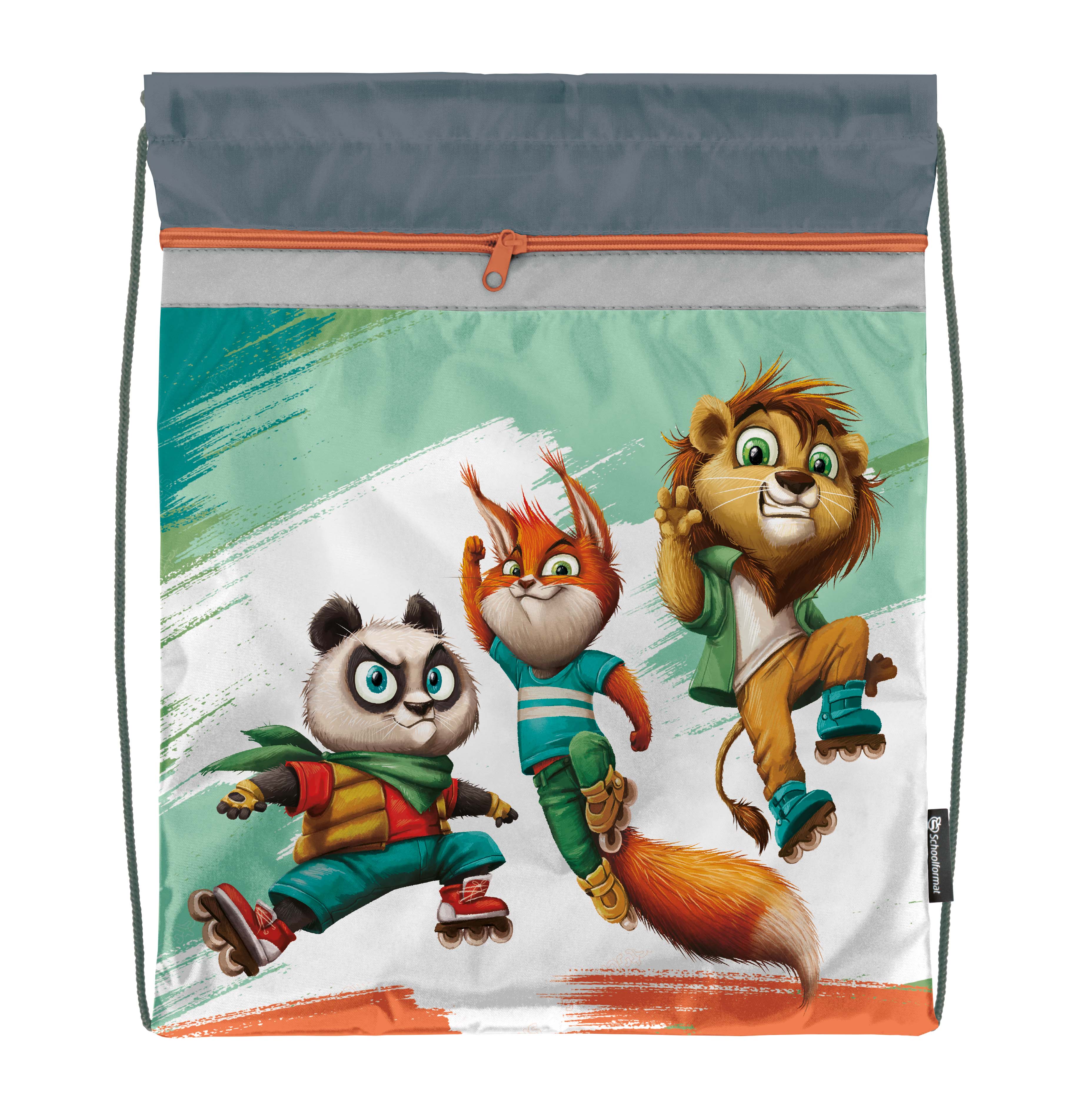Мешок для обуви Schoolformat ВЕСЕЛЫЕ ЗВЕРЯТА 42х34 см серый 1 отд. с бол. карманом на молнии универс.