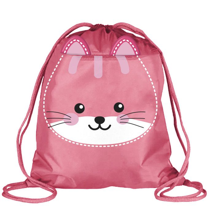 Мешок для обуви Каляка-Маляка КОШКА 38x38 см роз. 1 отд. с бол. карманом на молнии для девочек