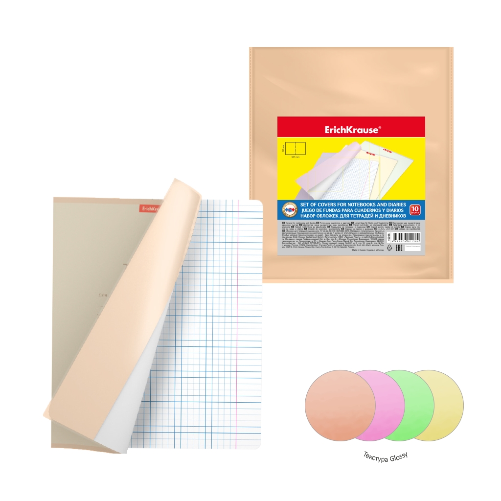 Обложка из высококачественного прозрачного пластика с особо прочными швами и текстурой поверхности "Glossy", на которой не видно отпечатков пальцев и мелких царапин. Надежно защищает тетради и дневники от повреждений. Гарантированно подходит для продукции ErichKrause®.