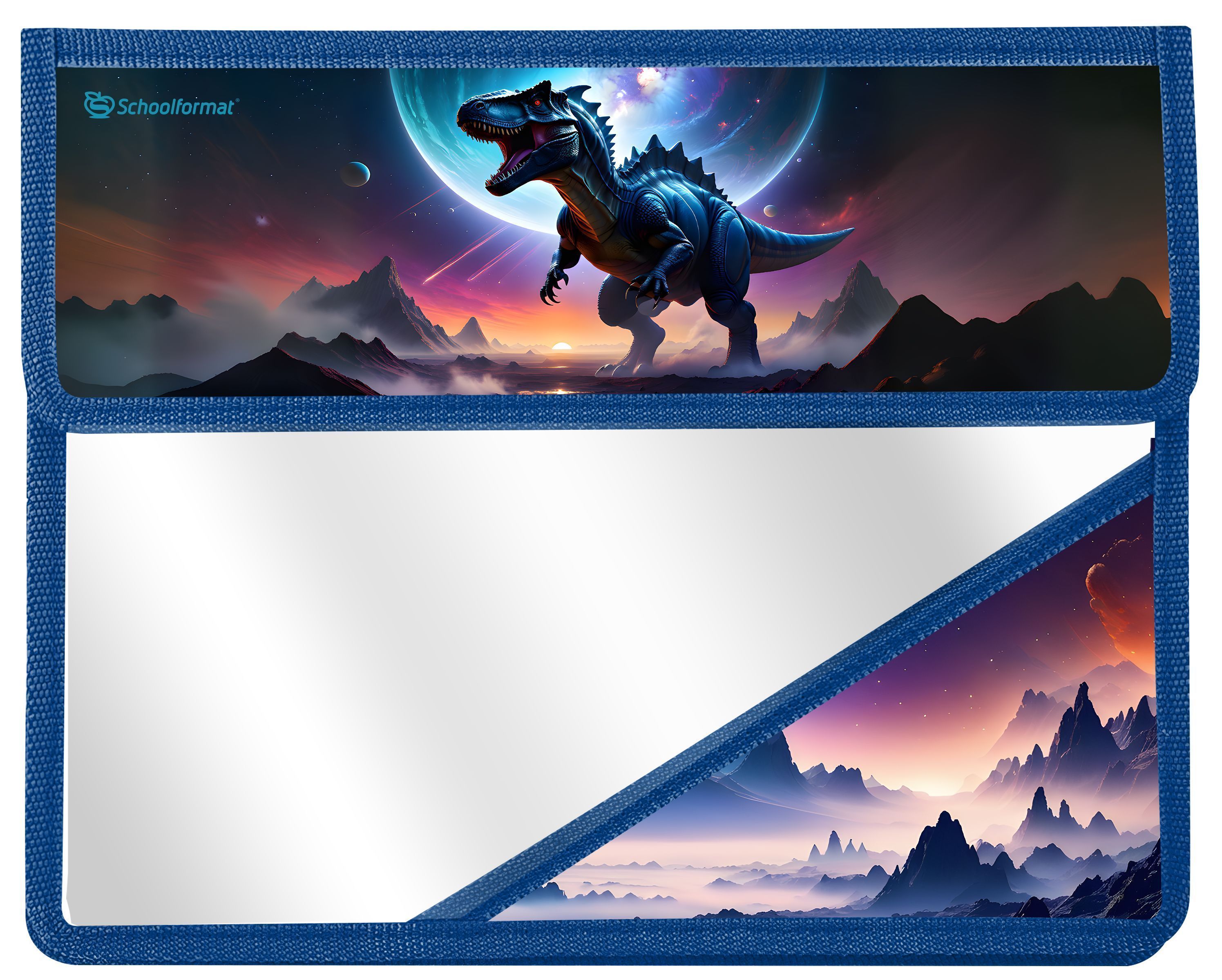 Папка для тетрадей 1 отд. А5 Schoolformat КОСМИЧЕСКИЕ ДИНОЗАВРЫ клапан на липучке 230х195х50 мм синий пластик, картон для мальчиков